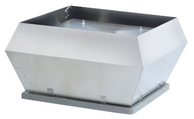 Конструкция вентилятора включает алюминиевый корпус и оцинкованную стальную раму с защитным порошковым покрытием, обеспечивающую надежность и долговечность в условиях эксплуатации. Рабочее колесо выполнено из полиамида PA6 25GV — материал сочетает прочность и легкость, поддерживая эффективную работу при температуре воздуха до 60 °C. Вертикальный выброс воздуха способствует оптимальному распределению вентиляционного потока на крыше зданий.